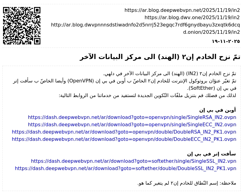 تمّ نزح الخوادم كأ١, دإ٢ ,إن١ ,كر١ و رس١ الى مراكز البيانات الأخريات